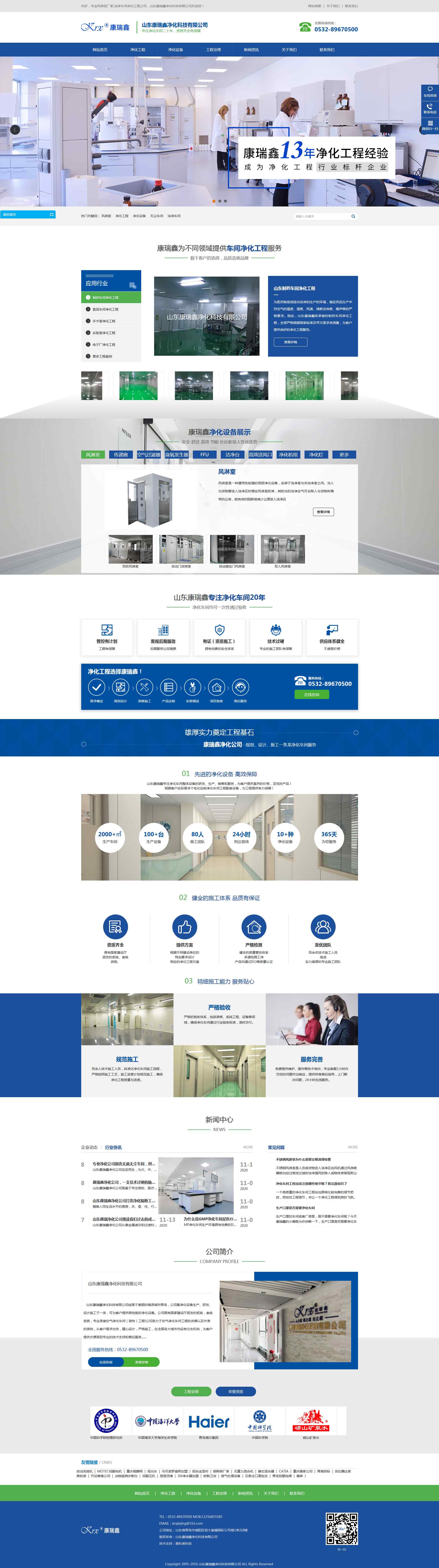 山东康瑞鑫净化科技有限公司座落于美丽的海滨城市青岛,公司集生产、研发、设计施工于一体,可为客户提供高性能的净化设备。公司现拥有国家建设厅颁发的贰级,叁级资质专业承接空气净化(装饰)工程!公司致力于空气净化工程的改善以及外表的装饰,从客户需求出发,精心设计,严格施工,在全国各大城市均设有分支机构,为客户提供方便周到专业的技术支持和售后服务。